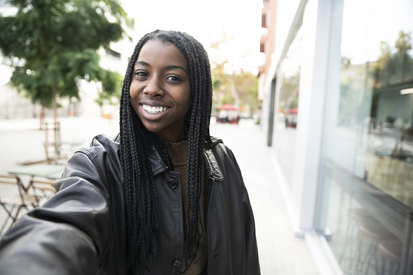 Woman in mask on street because epidemic of coronavirus in city. Protection against virus and infection